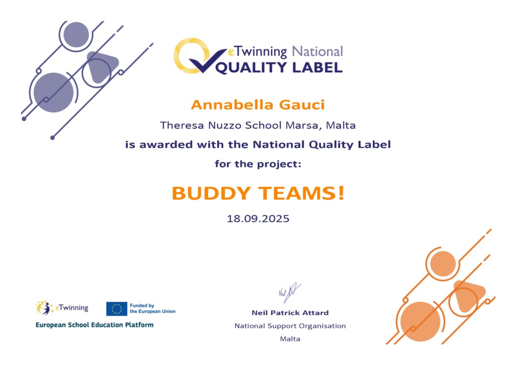 The Fifth eTwinning Project, BUDDY TEAMS! was created on 28th December, 2024 by Guluzar Baser from Turkey and Co-Founded by Lidia Chrapkowska from Poland and includes partnerships with schools from Romania, Lebanon, Spain, Italy and Ukraine.